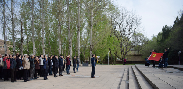 在为人民服务讲台,全体党员瞻仰了张思德雕像,聆听了张思德事迹介绍,重温了毛主席《为人民服务》的演讲,并面对鲜艳的党旗举行了庄严的宣誓。随后,到枣园革命旧址参观了毛泽东、周恩来、朱德等老一辈无产阶级革命家工作和生活的地方,接受延安精神教育。