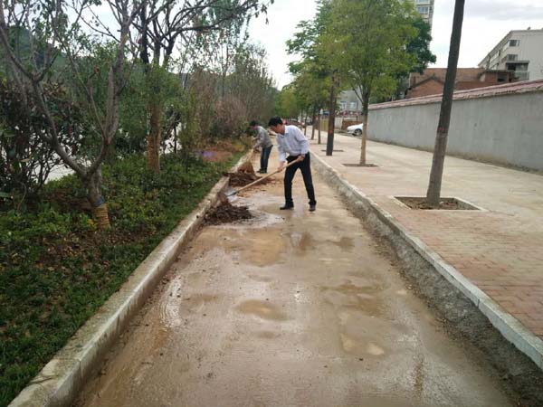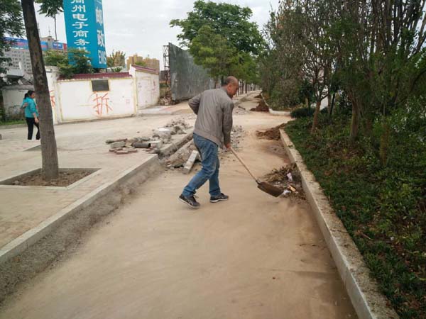 市直机关工委书记胡仁强带头打扫路面卫生